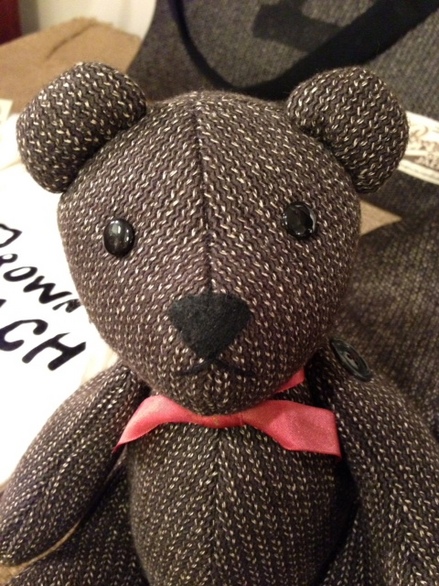 ボタンには猫目ボタン、布帛にはヘリンボーンを使用し