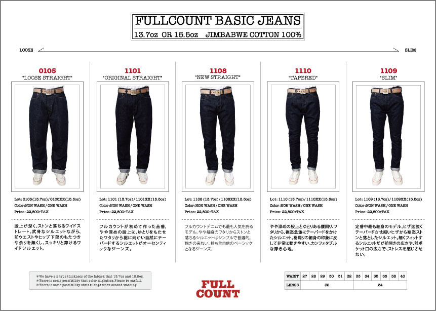 フルカウントの定番ジーンズからあなたのお 好みの一本を選んで頂き、