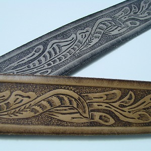 70年代に時折見られた裏表両面にカービングが施されたベルトを元に作られたベルト。 フルカウントベルト定番の牛革ショルダーレザーを採用し、馴染みやすく頑丈に仕上がった。 使い込み、艶が増す事で、カービングがより際立つ。長く愛用したい一本。