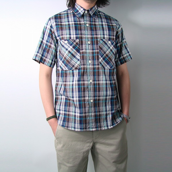 マドラスチェックを落とし込んだカッレジシャツ。